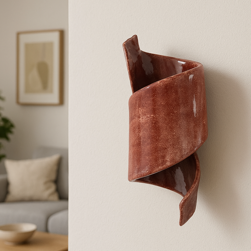Escultura em cerâmica de alta temperatura, feita a mão. Pode ser utilizada na parede ou na mesa/bancada.