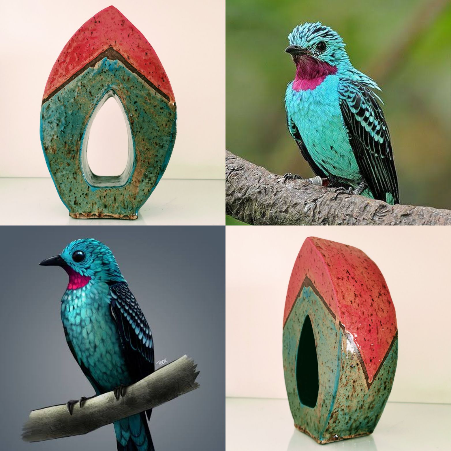 Essa escultura contemporânea faz parte da série “Pássaros do Brasil”. Referencia o Pássaro Cotinga-Cayana. Com ela, busco trazer a beleza e cores desse pássaro que tem como costume pousar solitário e seguro no alto dos galhos das árvores da imensa floresta amazônica, passando longos períodos da manhã assim, observando a verde imensidão.