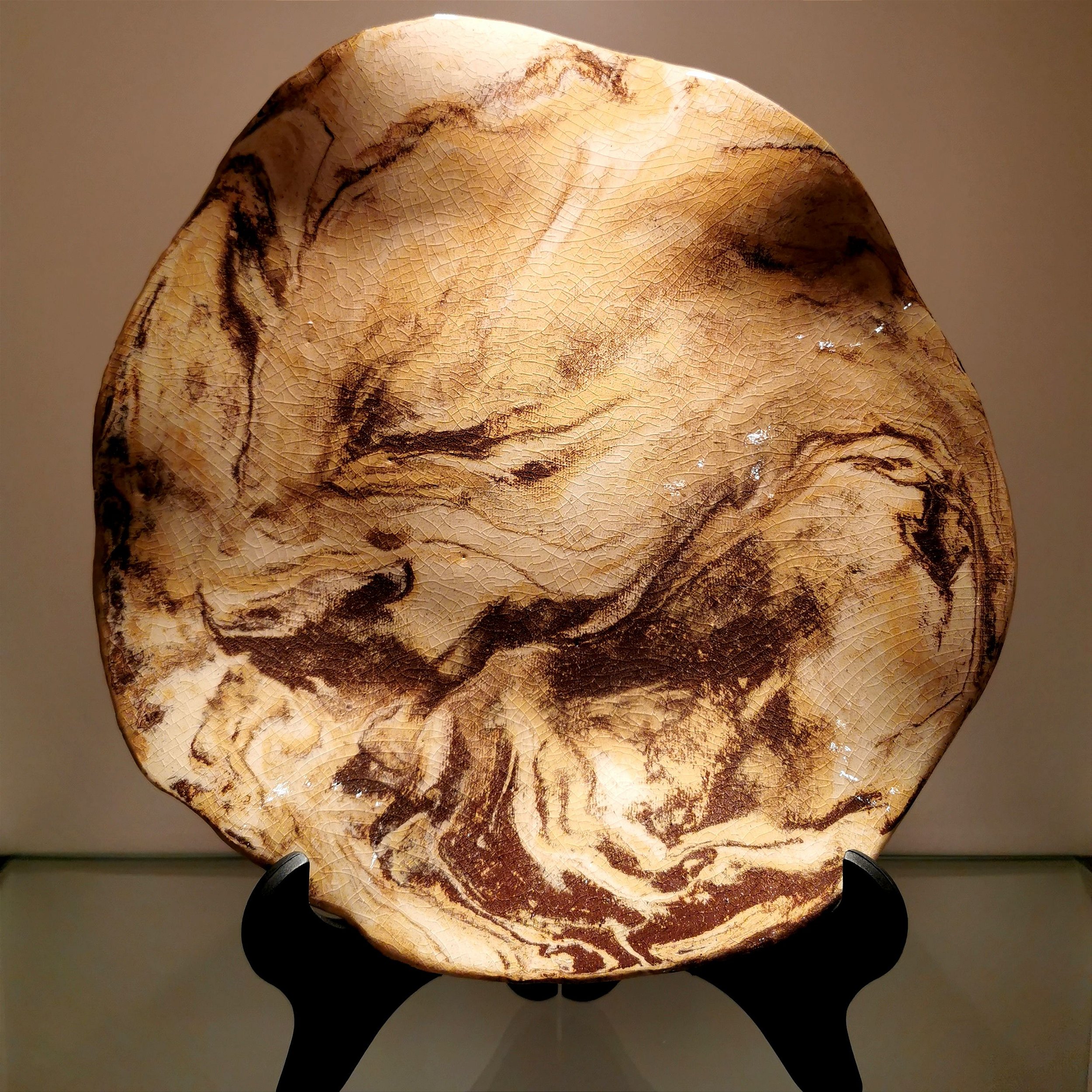 Prato em cerâmica de alta temperatura, feito a mão, com a tecnica de Paleteado, marmorizado em ceramica de tres cores e esmaltado .