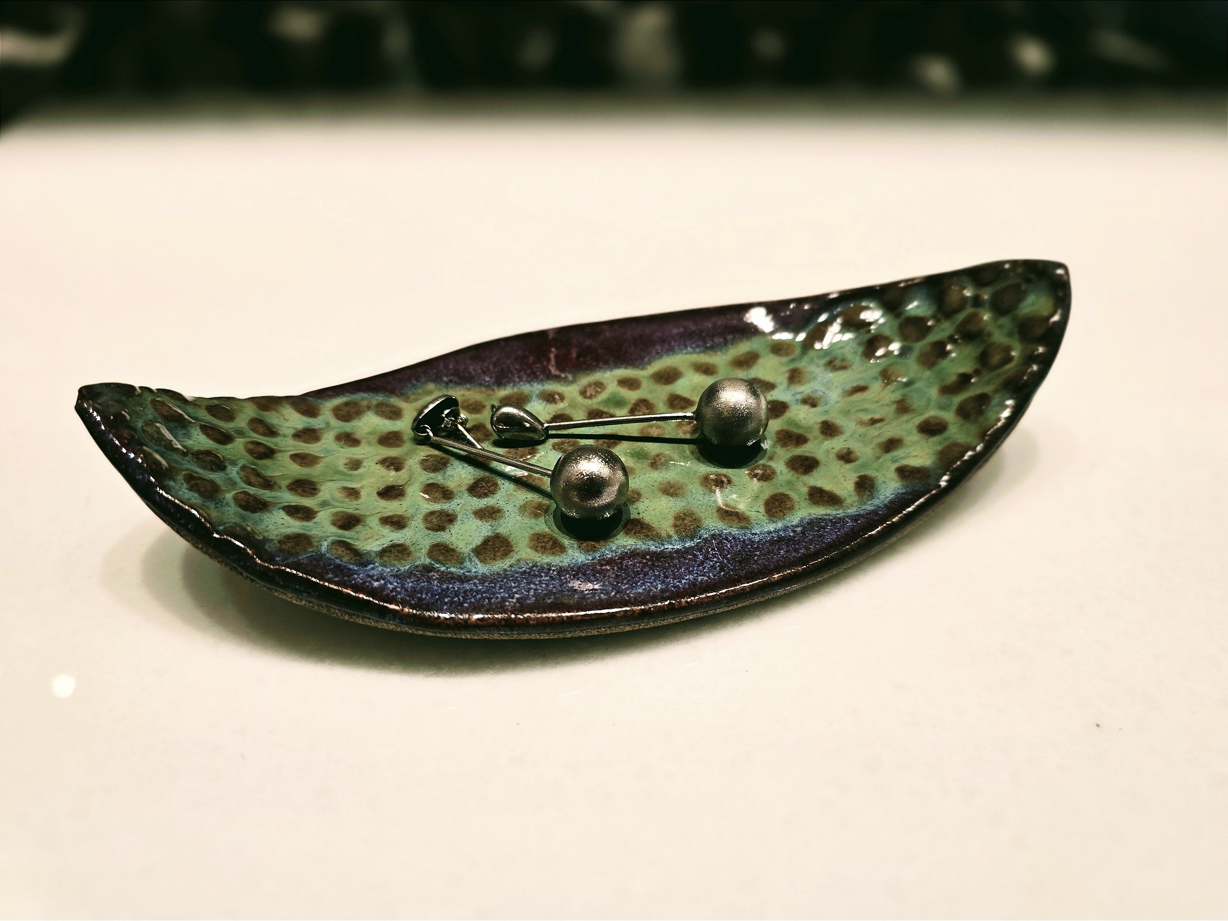 Pratinho em ceramica de alta temperatura, modelado a mao e esmaltado.